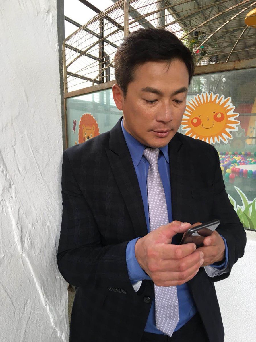 江宏恩拍戲空檔一旁划手機聯絡事情