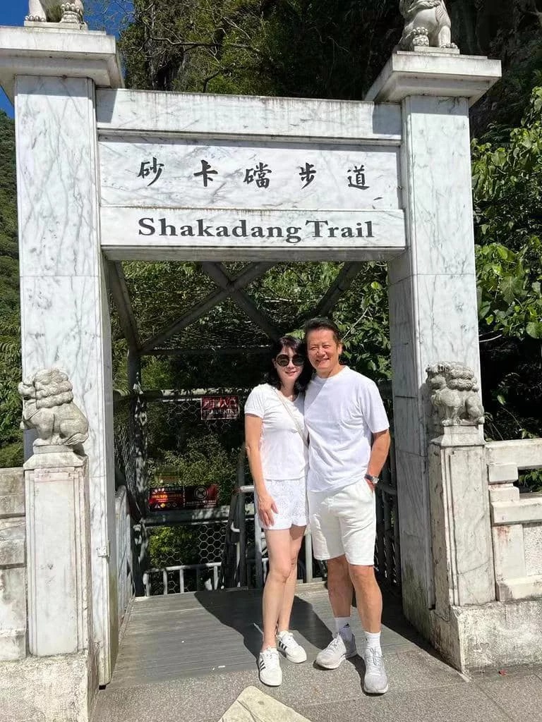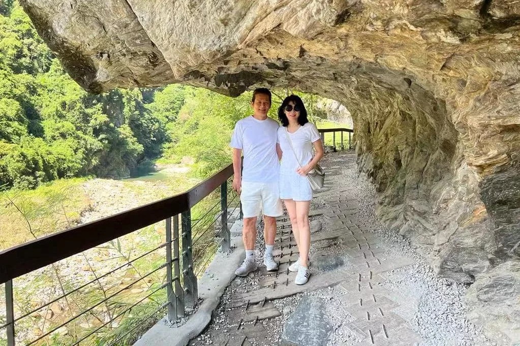 ▲徐乃麟(右)帶著老婆一起遊太魯閣。圖/摘自臉書