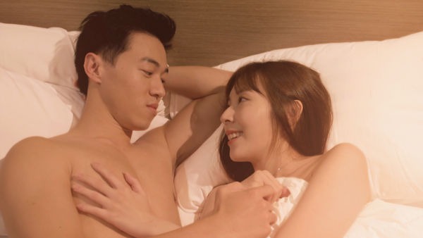 ▲游書庭(左)上演大尺度床戲。(中視提供)