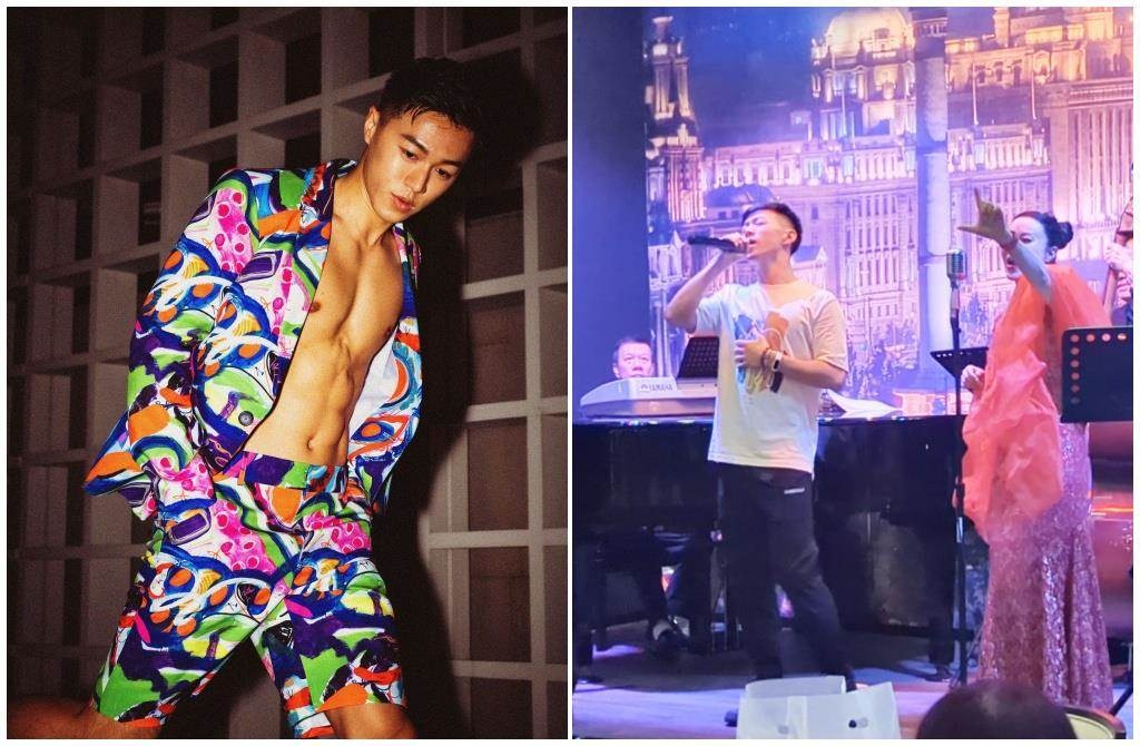▲游書庭(右圖左)在新加坡被認出藝人身分,人生首次上台開唱。(艾迪昇傳播提供)