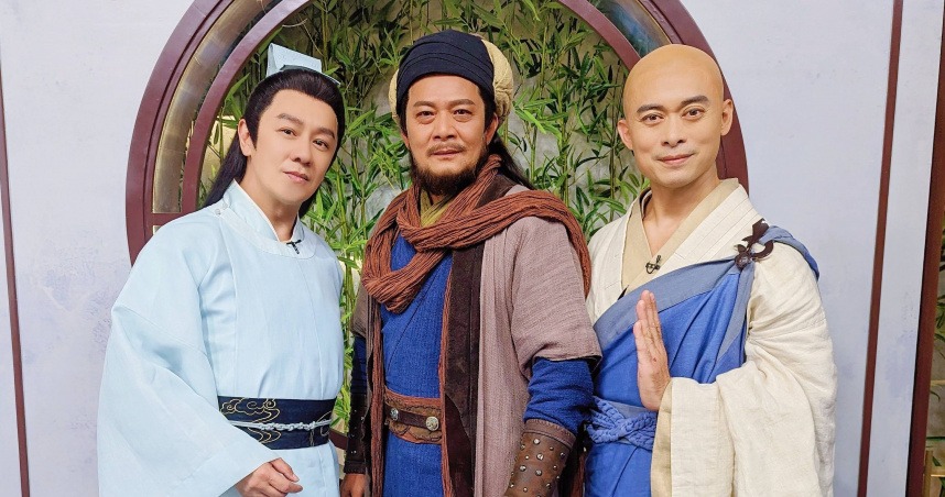 ▲陳浩民(左起)、黃日華與樊少皇隔了多年再以《天龍八部》中的扮相現身。(圖/艾迪昇傳播提供)