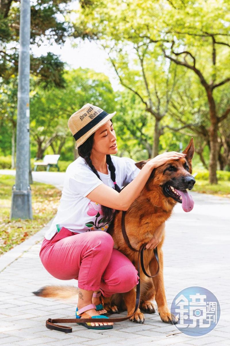 ▲李蒨蓉平日最愛帶著Wolfy到公園散步,Wolfy也乖乖配合。