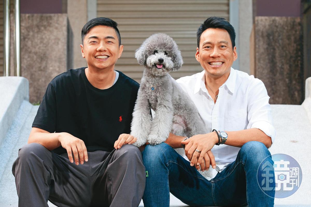 ▲艾力克斯(右)帶著狗狗Kirby來找熊爸(左),希望幫忙解決狗狗暴衝撲人的習慣。