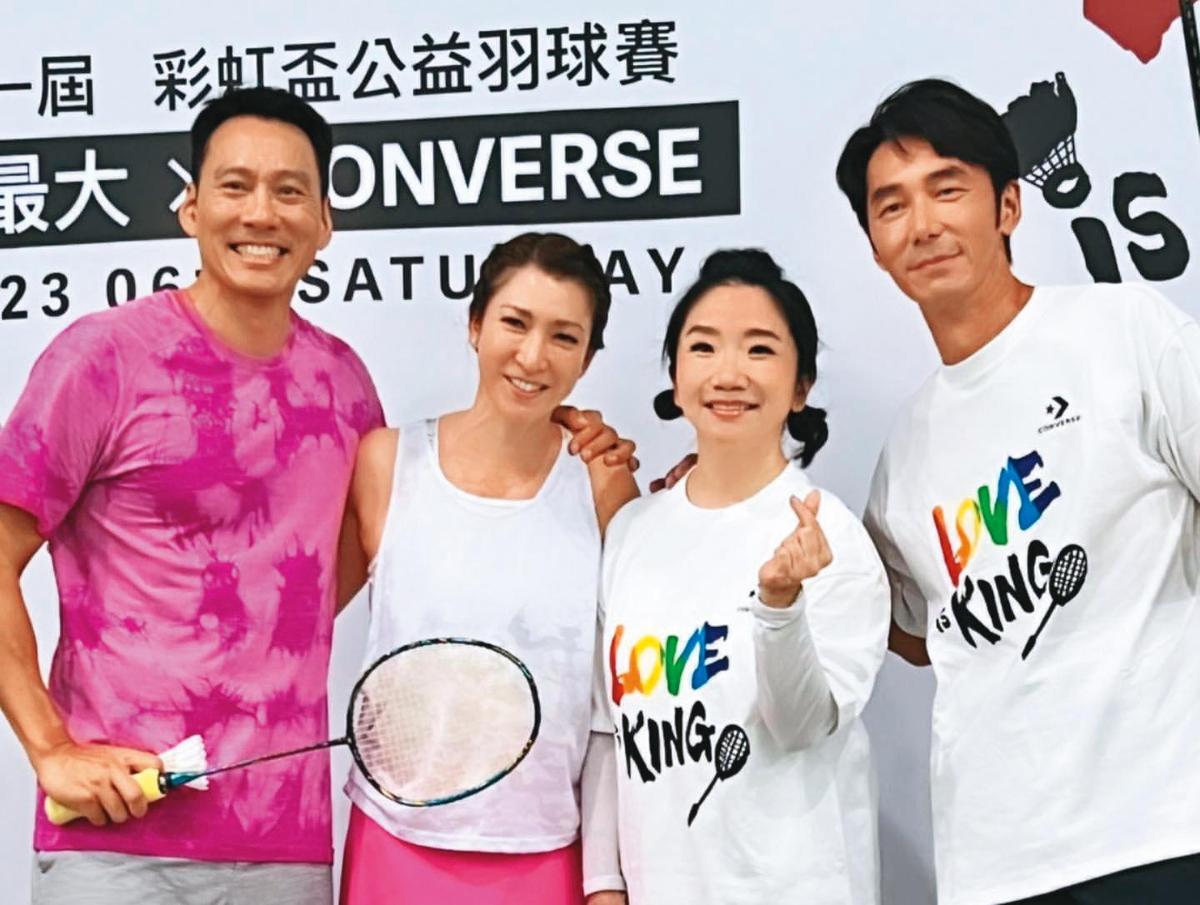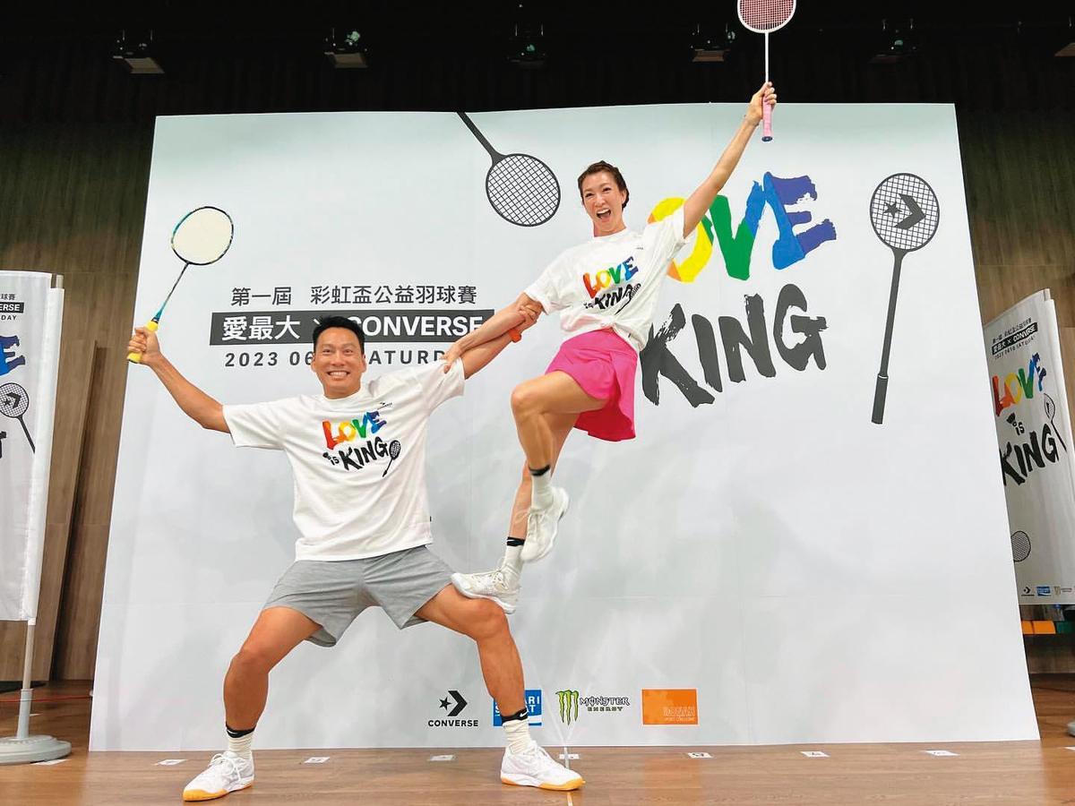 ▲日前艾力克斯(左)、李詠嫻(右)參加公益羽球賽,夫妻倆打得很起勁。