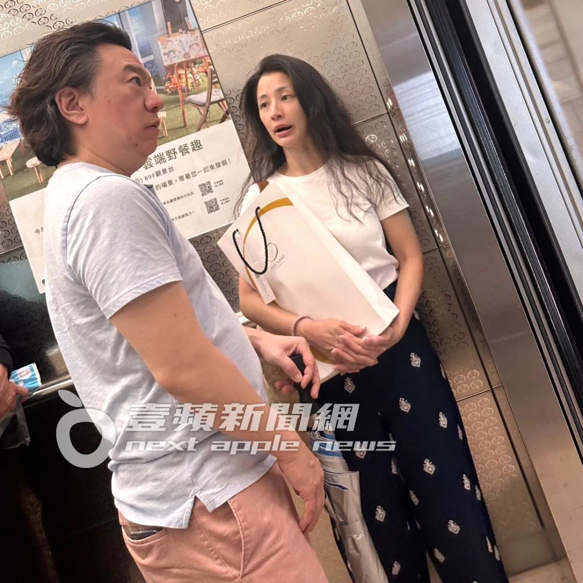 ▲讀者表示李蒨蓉(右)素顏「依舊很漂亮」,和老公李德立在台北101搭電梯準備上樓買麵包。讀者提供