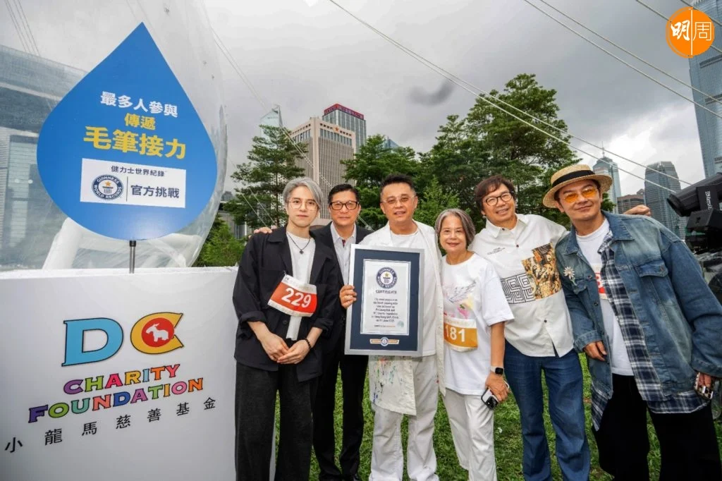小龍馬慈善基金與保良局近日於添馬公園「舞動水滴展」場地,舉辦「最多人參與的毛筆繪畫接力」挑戰,成功以259人參與創下全新世界紀錄!活動請來彭健新、陳浩民夫婦及張彥博等名人支持。眾人以傳統毛筆接力繪製600米「水龍長卷」,以藝術慶祝東江水供港60週年。