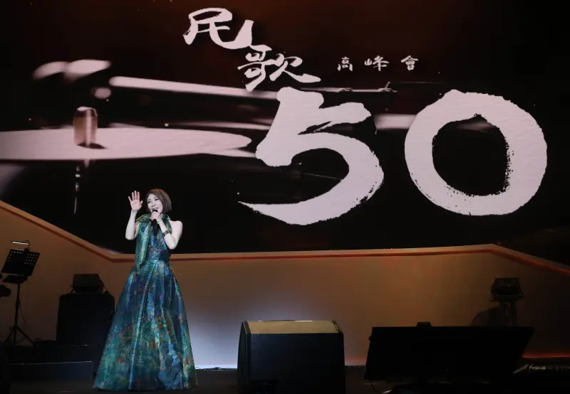 ▲民歌50高峰會台中場於昨日落幕,李翊君(如圖)驚喜現身獻唱〈萍聚〉,千人合唱淚灑現場。(圖/寬宏藝術提供)