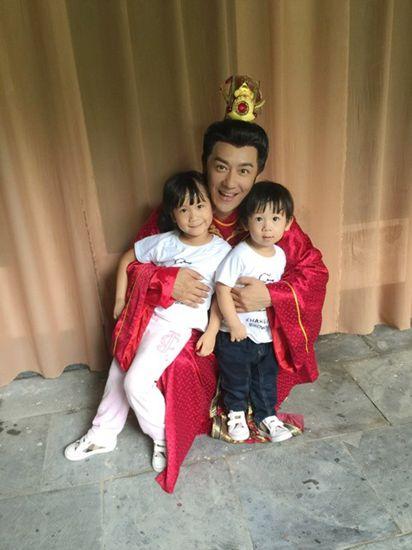 腾讯娱乐讯陈浩民近日在安徽滁州赶拍新戏,他在新戏里的皇帝造型曝光,陈浩民身穿红色皇袍霸气十足,不过另外一张照片中,他抱着到剧组探班的儿子、女儿,露出开心微笑,父爱表露无疑,让旁人都感受到了陈浩民有家人陪伴的幸福。陈浩民说,“女儿学校放假,太太就带着他们过来了,有他们陪在身边,拍戏感觉更有劲。”