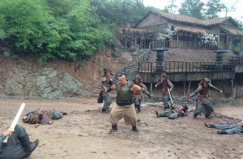 经典神话故事改编的大型古装剧《哪咤与杨戬》在横店热拍,近日横店下起大雨,主要演员在剧中饰演雷神“雷震子”的林子聪,就在全是满是湿软泥巴的场地拍起打戏,穿着厚重戏服在大雨中拍摄,已经分不清是雨水还是汗水,但林子聪与武行们都尽全力演出,即使全身湿透,还是敬业的完成每一个画面,他说, “与武行们相当熟悉,所以虽然雨中拍摄比较辛苦,但却也玩的很开心。”