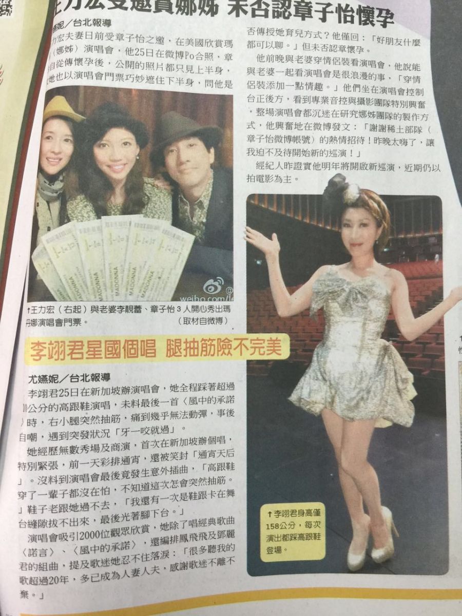 李翊君25日在新加坡办演唱会,她全程踩着超过10公分的高跟鞋演唱,未料最后一首〈风中的承诺〉时,右小腿突然抽筋,痛到几乎无法动弹,事后自嘲,遇到突发状况「牙一咬就过」。