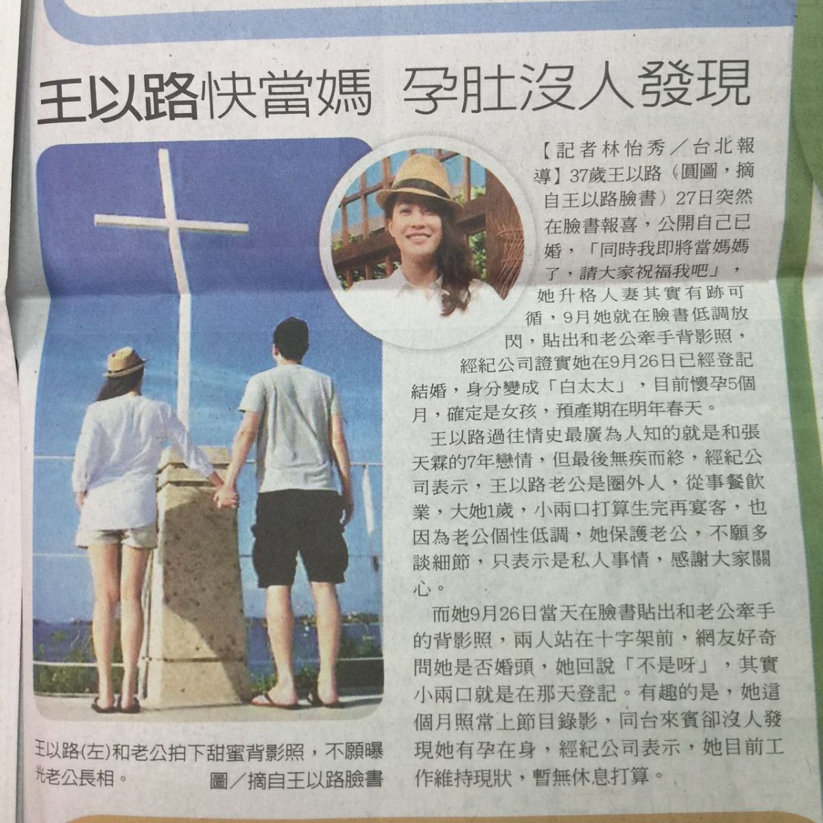 37岁王以路27日突然在脸书报喜,公开自己已婚,「同时我即将当妈妈了,请大家祝福我吧」,她升格人妻其实有迹可循,9月她就在脸书低调放闪,贴出和老公牵手背影照,经纪公司证实她在9月26日已经登记结婚,身分变成「白太太」,目前怀孕5个月,预产期在明年春天。