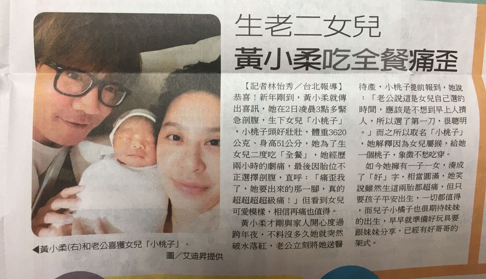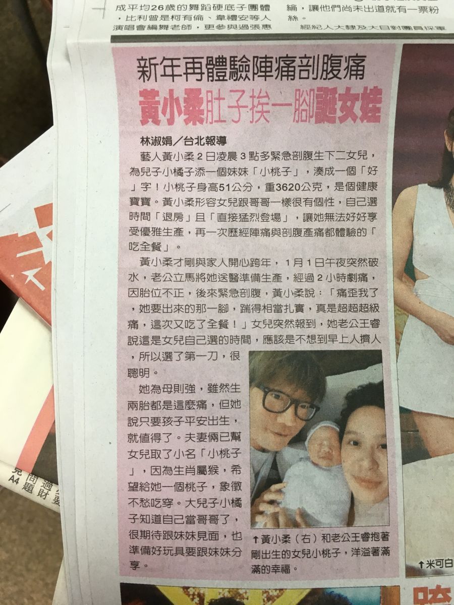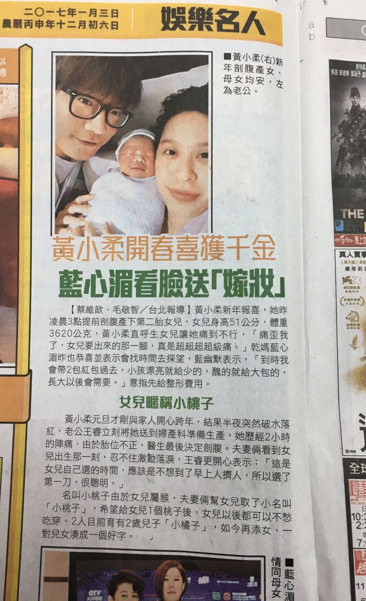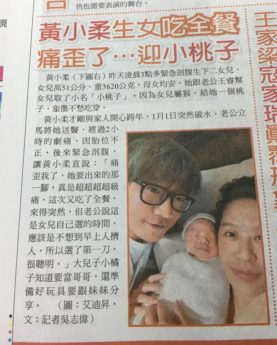 新年报喜,艺人黄小柔二日凌晨三点多紧急剖腹生下二女儿,