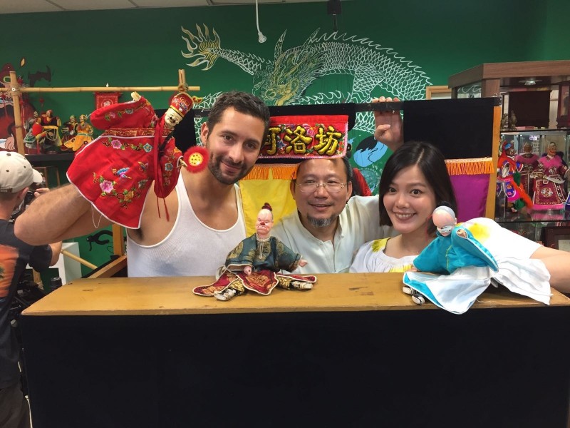 陈翊萱参与美国电视台旅游节目,并介绍在地的布袋戏文化。(艾迪昇提供)不过陈翊萱到现场后发现操作布袋戏的人偶,真的是一项博大精深的技术,她看到师傅操控一尊女性戏偶,并且轻松做出拨头髮等抚媚的动作,让她相当惊讶,不过当轮到她尝试操作戏偶时,即使在现场练习多次,甚至手都快抽筋还无法顺利完成细腻动作,她笑着说:「现场看师傅操作得很轻松,不过真的现场学起来真的很难,最后只好放弃。」