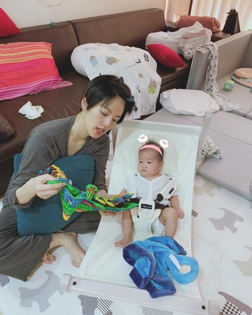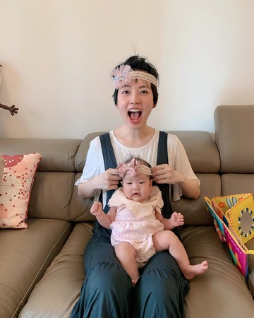 ▲女儿出生3个多月阿诺认还在努力学当妈。(图/艾迪昇提供)