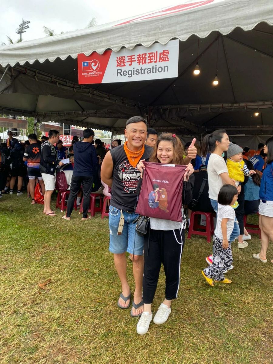 江宏恩(左)半年前想出和太太一起参加铁人三项庆祝自己的50岁生日作为纪念。江宏恩提供