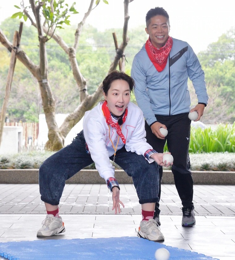 林义杰(右)上巴钰节目玩游戏。卫视提供