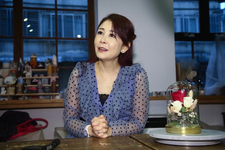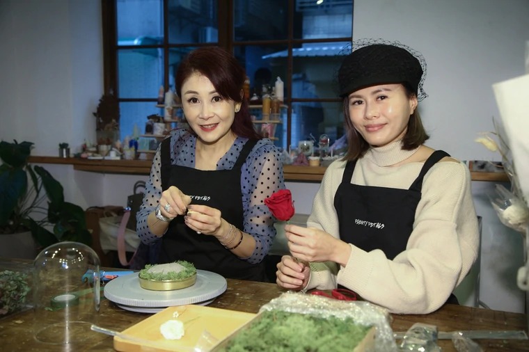 曲艾玲(左)做花艺,透露多年来都有这个嗜好。彭欣伟摄 场地提供:Plenty Petals