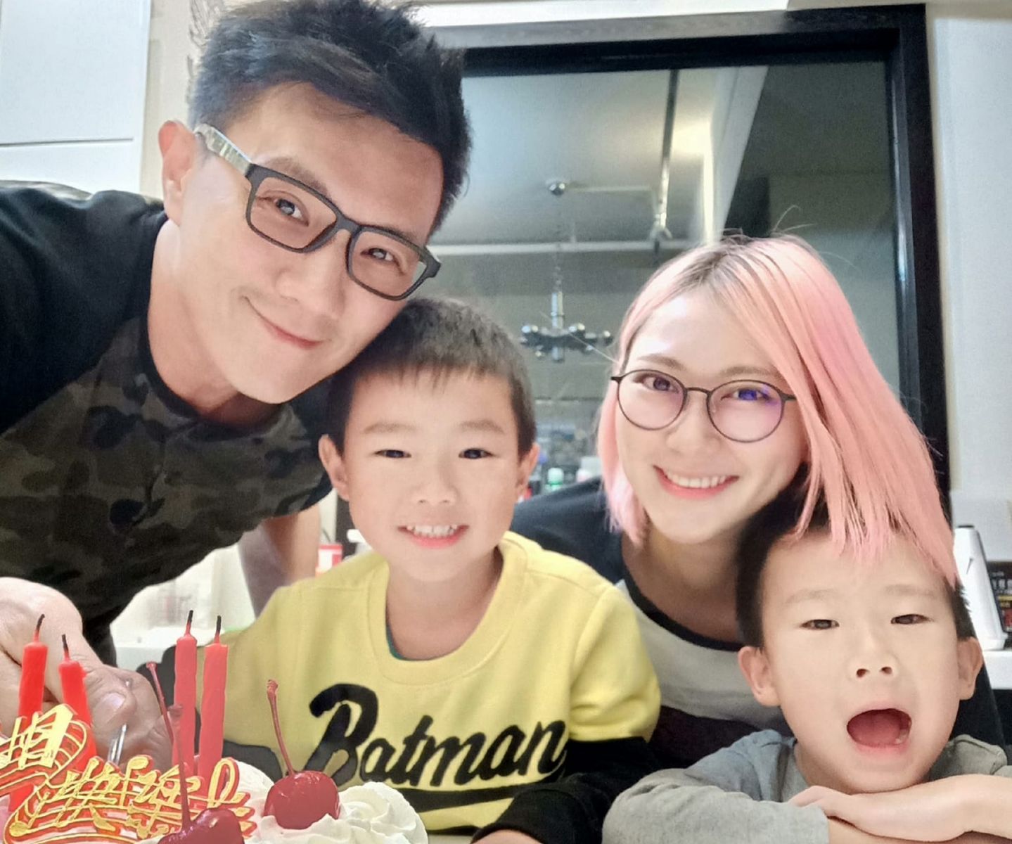 ▲蒋伟文(左)全家动员投入卡通配音。