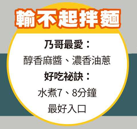 由于父母都是大陆安徽人,乃哥小时候经常吃面食,他认为没有人的手艺比得过徐妈妈,自然也把这样的高标准,加诸在输不起拌面上,从筹备到上市,耗时近八个月,除了与合作团队做足市场调查,还吃遍市面上各品牌的干拌面,将各家酱料的优缺点去芜存菁。但寻求合适的厂商却不容易,乃哥接连打枪四家代工厂,经过多次磨合,终于调出他心目中的好滋味。