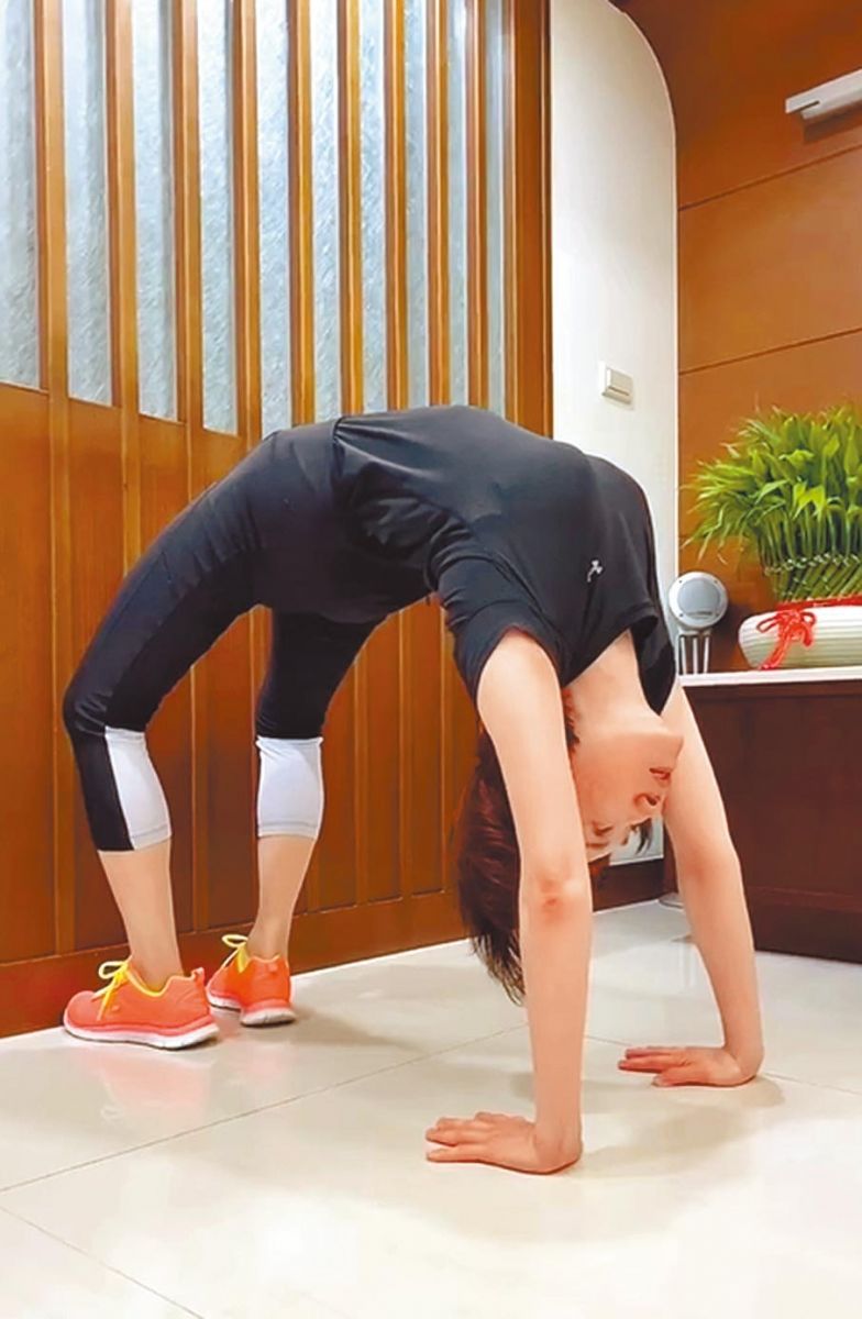 ▲李翊君示范倒立、下腰矫健身手。(摘自脸书)