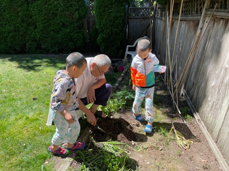 李培祯爸妈家在郊区,后面就是一片森林,这段时间的日常就是带着孩子们会去採野生黑莓、捡松果、木头,以及到湖边去看鸭子,十分惬意。以往回加拿大,会规画行程,觉得一定要去哪里玩,「这次反而觉得每天在家附近骑脚踏车、散步、看鸭子、摘莓子、追兔子、种花种菜就很好玩,疫情其实提醒了我们什么才是最重要的,也让我们更懂得珍惜以往视为理所当然的事」。也更十分珍惜和家人相聚的时刻,现能吃到吃到爸妈的料理,陪伴双亲,和弟弟及姪子们玩就无比幸福了。