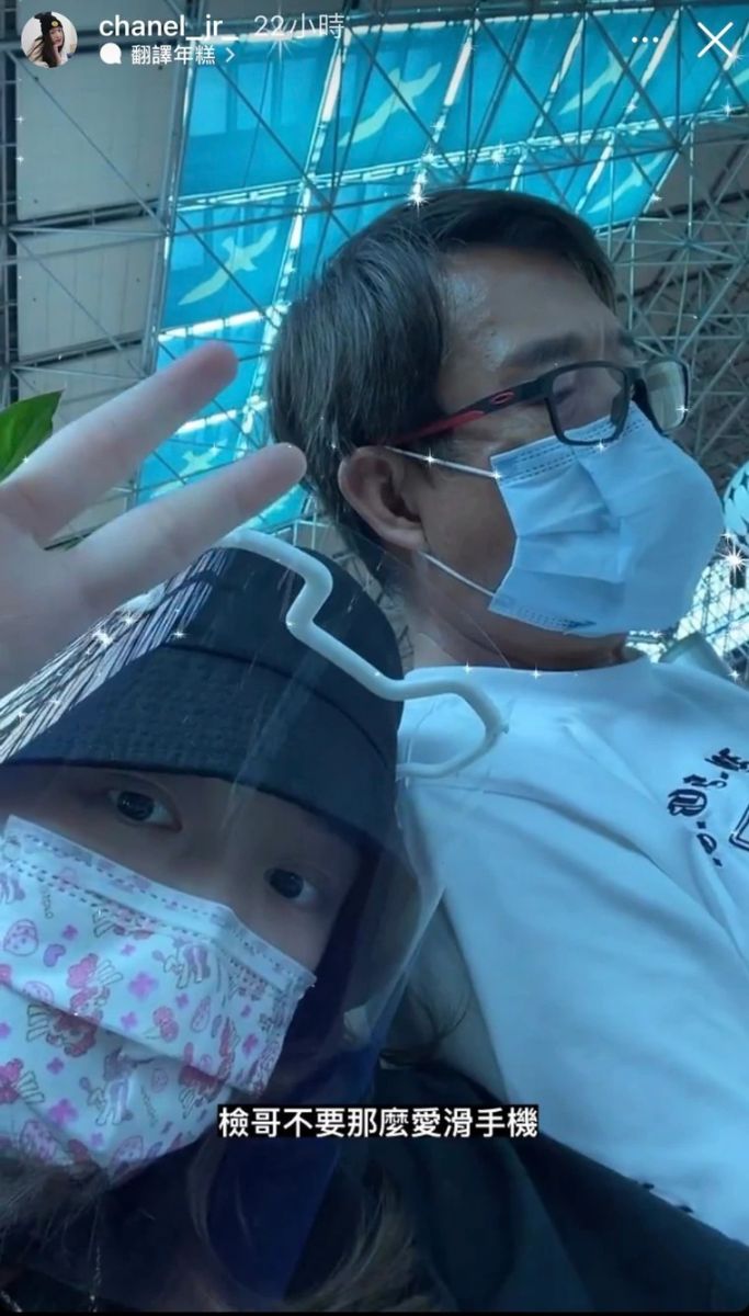 ▲李翊君与检场的爱女「香奈儿」王敏淳搭机赴美开学,老爸检场到机场送机。翻摄王敏淳IG