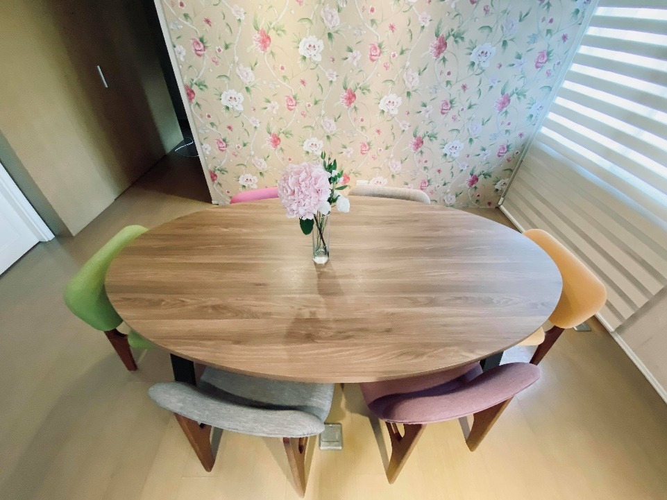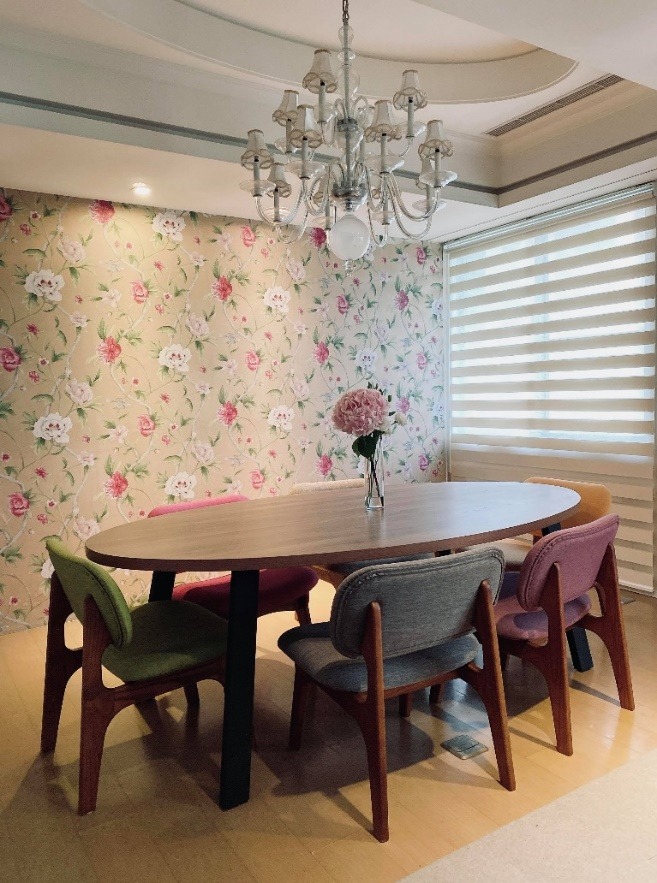 将「家庭关系」放第一位的蒨蓉,居家改造的预算,不是放在爱美女生梦幻的更衣室、卧室、而是全下在以家人最常聚在一起的核心空间,「大家赚的都是辛苦钱,预算有限,卧室就是睡觉休息的地方,我觉得不大需要花心思,越简单越好;反而是餐厅、客厅,是我们「家的中心点」,我们家老小跟我,不常待在房耶,除了一起吃饭外,做工作、功课、聊天追剧…都会拉到这,感情就一点一滴在这培养出来。因此我订做了一个够大的新餐桌,大方的椭圆形,挑了撞色又耐坐的马卡龙色系的椅子,窗帘从厚重的欧式布帘,换成清新透光的布x纱拉帘,白天晚上都适合一家人在这儿混。我的心得就是,家里公共空间人气越旺,一家人的感情就会越好,大家试试看吧!」