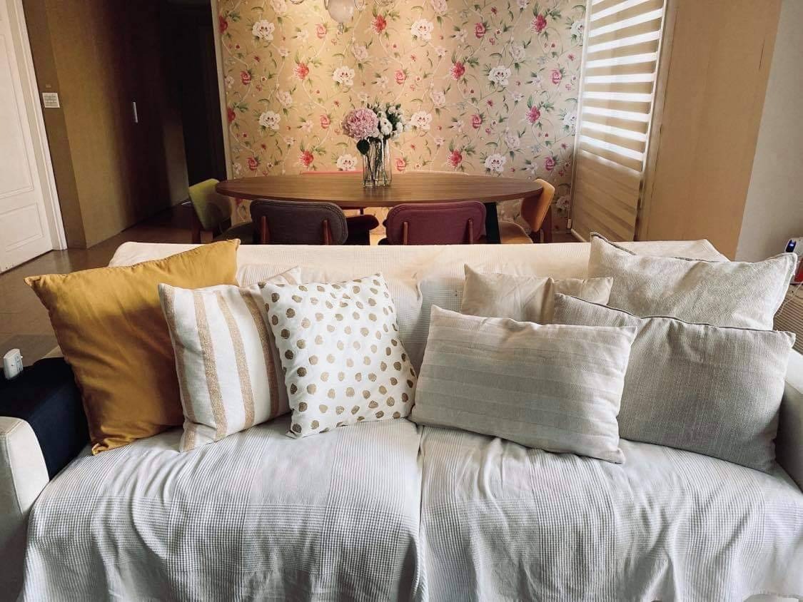 蒨蓉美好家的想像中之不可或缺,「软调性的布,就是有一种温柔亲密fu,沙发抱枕地垫窗帘椅垫…不同质感的面料在空间中混搭,自然飘出家的氛围。客厅主家具也是布沙发,换季时换一下抱枕套,立马焕然一新!」