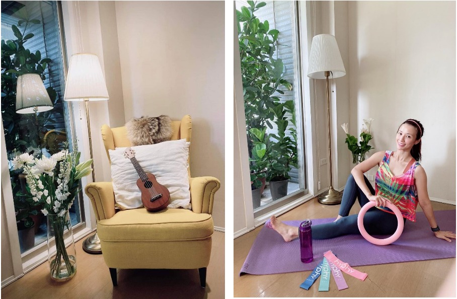 小家具的机动性强,白天移开就是简单的运动空间,疫情期间在家整理的时间更多,发现真的有太多不需要的东西了,「下定决心以后不乱买之外,我也把之前买的小物拿来妆点沙发,毛毛围巾和乌克丽丽,是不是很有气氛?」