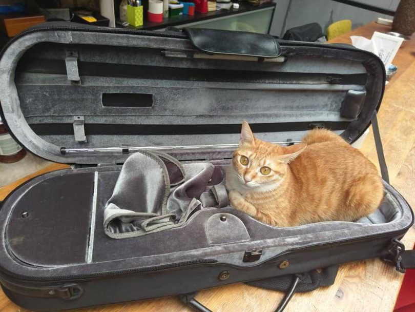 除了录音间之外,余荃斌说整个家全部都是猫的活动空间,也随牠们把吉他盒当作藏身之处,非常宠猫。(图/艾迪昇提供)