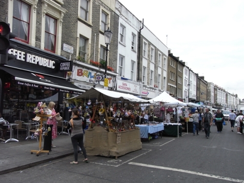 另一个林美贞推荐的伦敦FREE MARKET是PORTOBELLO MARKET古董市集,号称全世界最大的二手市集,每到假日整条街上一定挤得水洩不通。因为这里不但可以挖宝找到物美价廉的二手商品,还有一整条街的摊贩让你从头吃到尾。只是林美贞说那里吃的东西可不便宜,和儿子两人光是吃路边摊就花了约台币两千元,价格之昂贵和台湾的摊贩价格完全不同,连自己也吓了一跳。不过当时和儿子坐在户外享受阳光,一边品尝西班牙炒饭,比利时松饼等欧风料理及甜点,还一边欣赏街头艺人的表演,甚至看到路人兴致一来就随音乐起舞,街道上气氛悠闲欢乐,是她在伦敦旅行最喜欢也一定会来报到的地方。