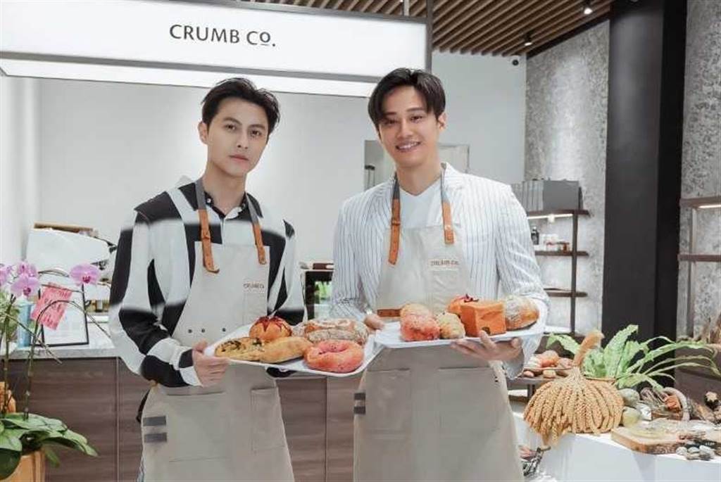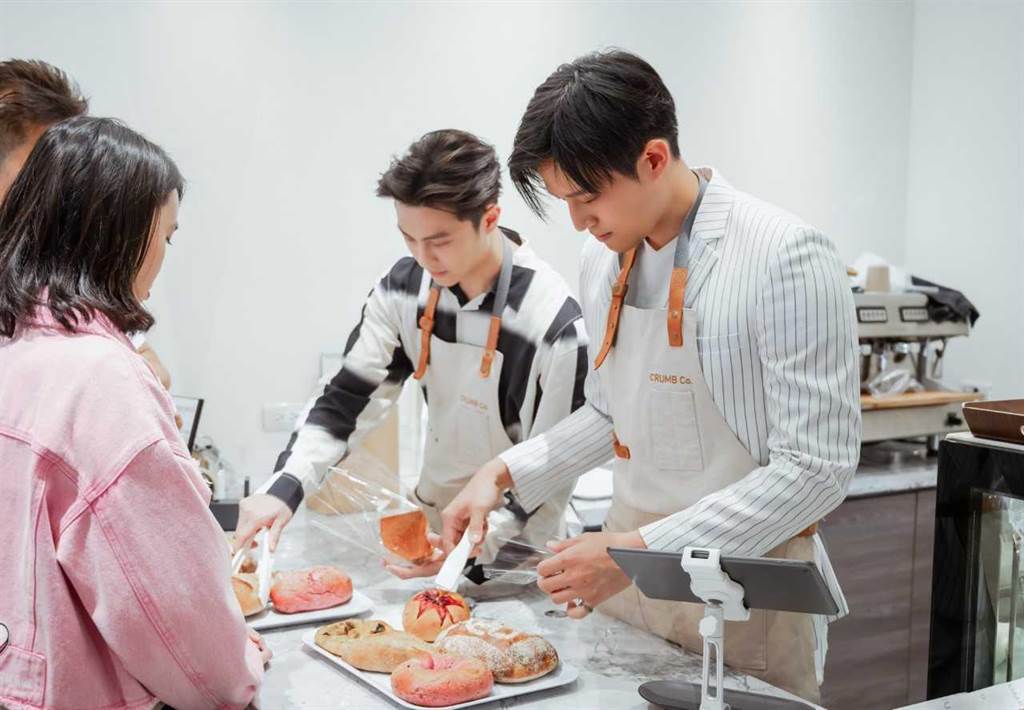 ▲徐新洋(右)邀好友王子替自家面包店站台。(艾迪昇传播提供)