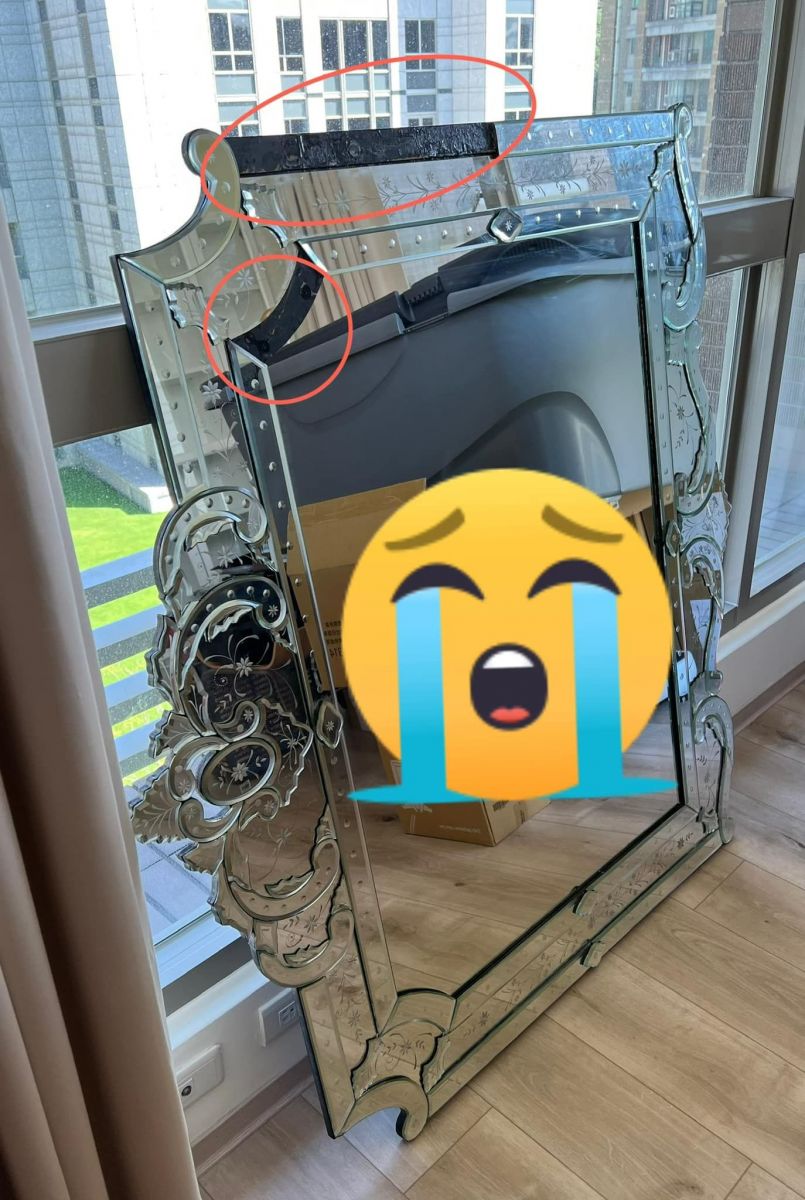 李蒨蓉表示,她认为与其追究搬家公司的责任,不如赶快找出修復镜子的方法更重要,然而她这一个月来询问过玻璃行、家饰店等,大家都没有办法补救,于是她只能发文求助网友,「到了新家很希望能够把镜子美美滴挂起来,再来个15年!不晓得大家有什么方法吗?」