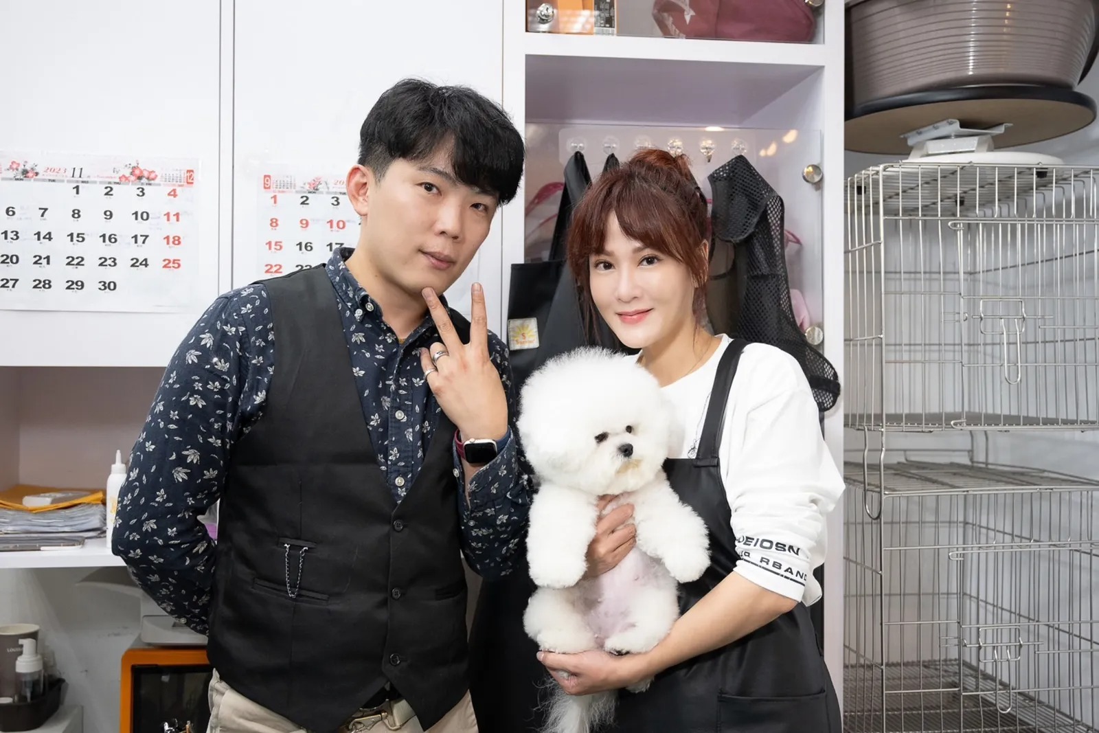 ▲邱琦雯(右)向小莫老师学习宠物美容技能。(艾迪昇传播提供)
