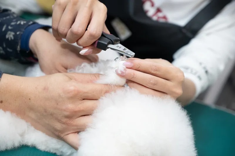▲邱琦雯在老师指导下帮狗剪指甲。(艾迪昇传播提供)