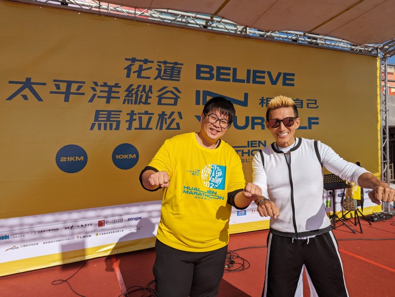 ▲潘若迪(右)受花莲市长之邀,担任马拉松嘉宾。(艾迪昇传播提供)