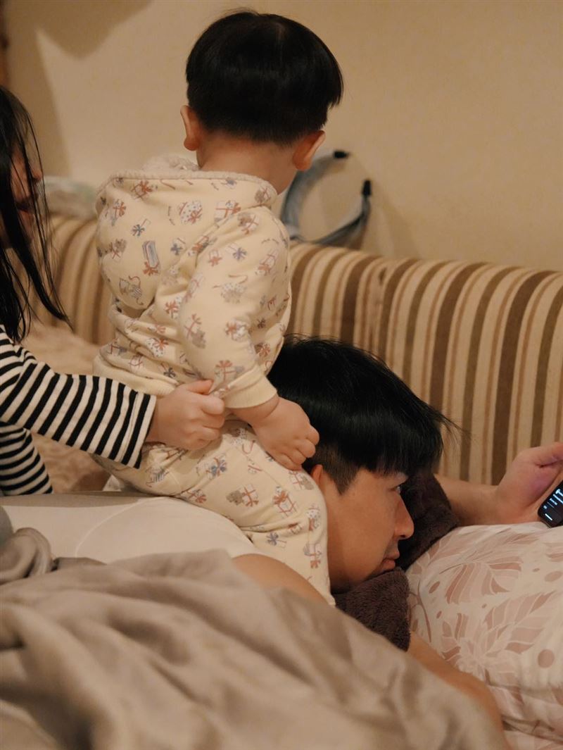 ▲潘逸安照顾两个小孩。(图/翻摄自脸书)