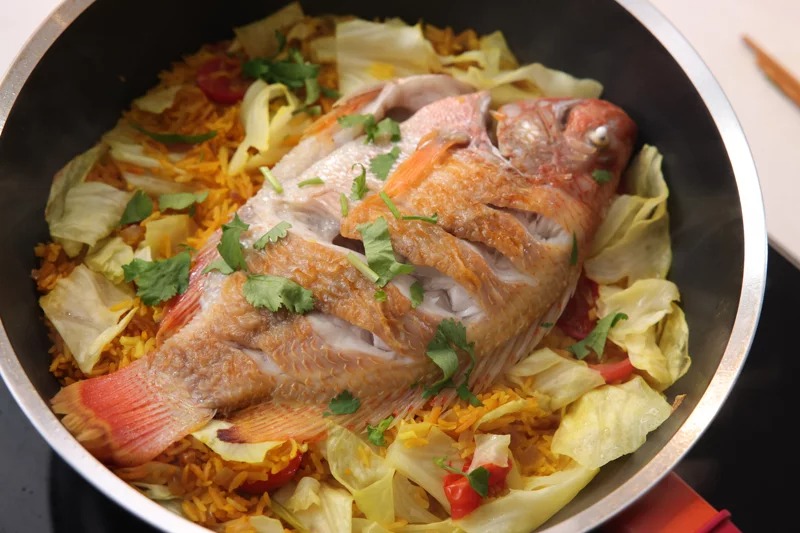 ▲黄金红鱼炊饭。记者李政龙/摄影