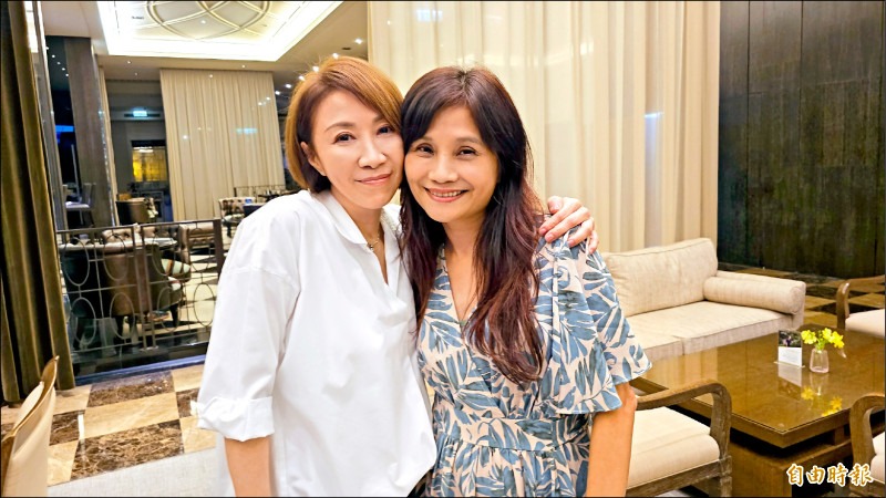 胡如虹(右)和她的艺人朋友李翊君。(记者潘少棠摄)