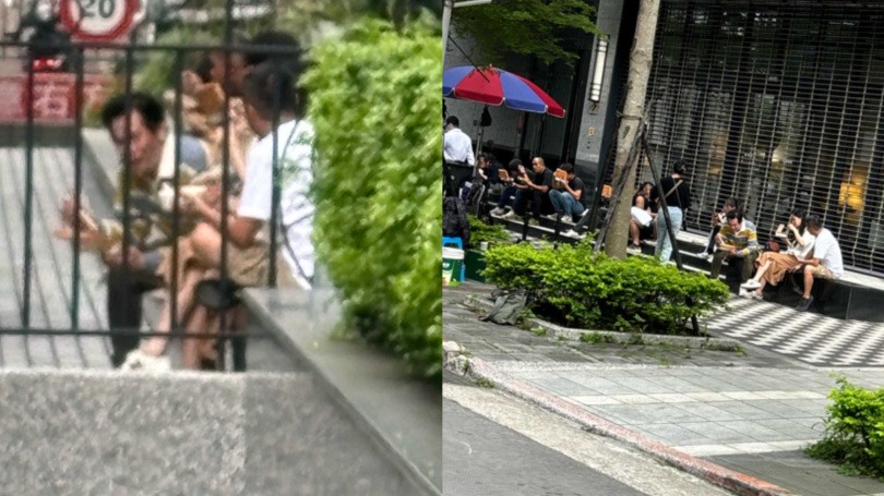 放饭时间马国贤跟着工作人员一起坐在路边吃便当。(图/读者提供)