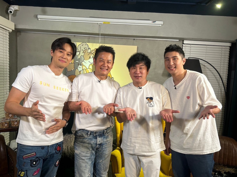 徐新洋(左起)、徐乃麟、胡瓜、胡释安录制YT节目。(下面一位提供)
