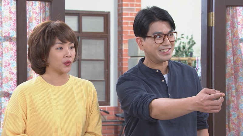 潘逸安(右)在《爱的荣耀》与赖慧如有逗趣互动。(民视提供)