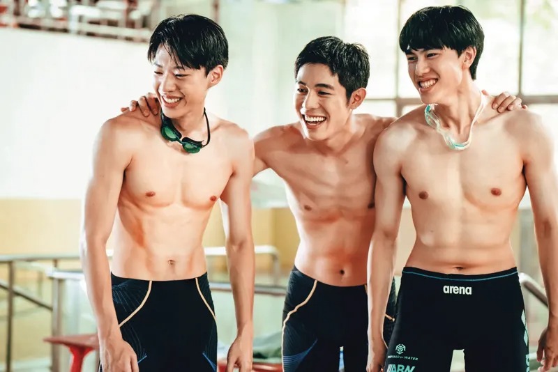 黄信赫(左)在台剧《让我看见你是谁》饰演校草,展露精实肌肉。(CATCHPLAY+提供)