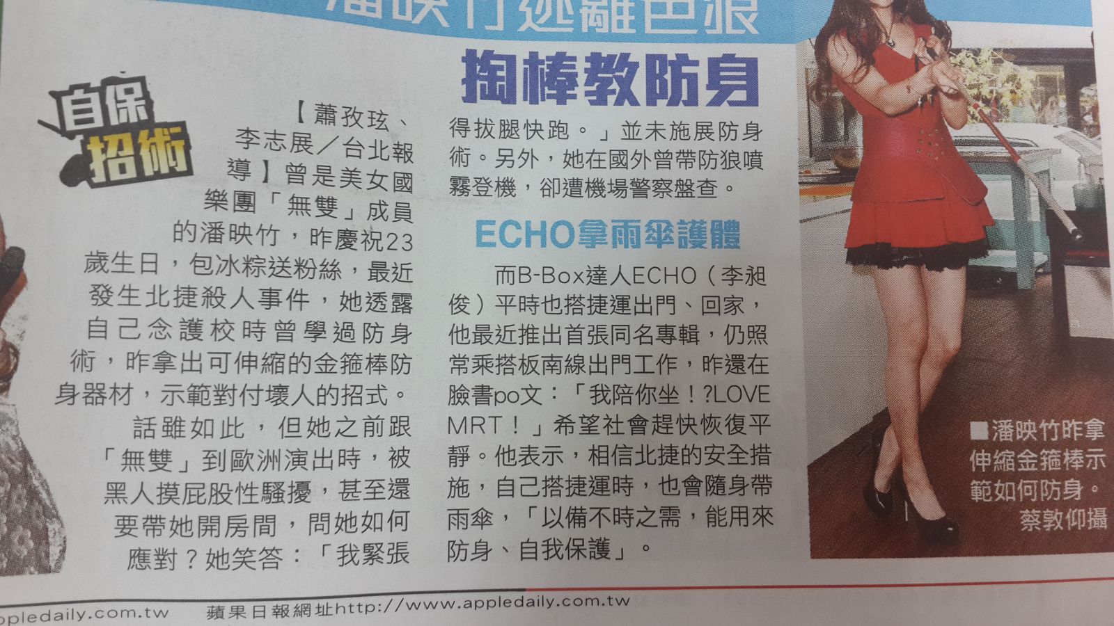 而B-Box达人ECHO(李昶俊)平时也搭捷运出门、回家,他最近推出首张同名专辑,仍照常乘搭板南线出门工作,昨还在脸书po文:「我陪你坐!?LOVE MRT!」希望社会赶快恢復平静。他表示,相信北捷的安全措施,自己搭捷运时,也会随身带雨伞,「以备不时之需,能用来防身、自我保护」。