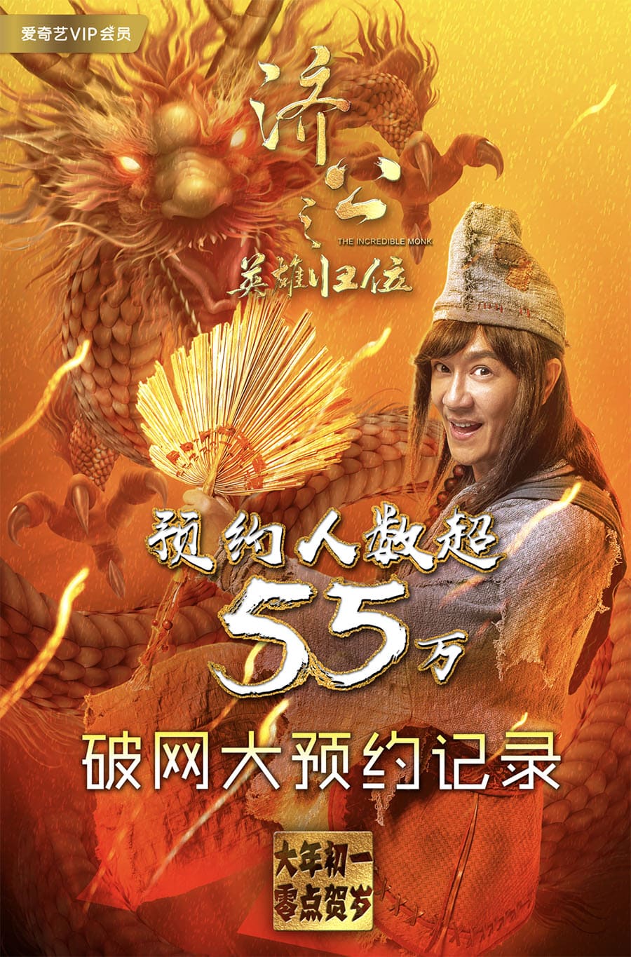 愛奇藝大年初ㄧ凌點賀歲獨家播映《濟公之英雄歸位》預約人數破55萬;請大家繼續支持陳浩民